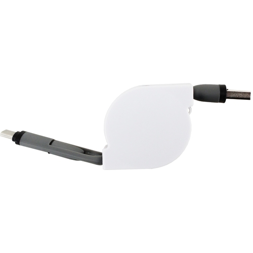 Check out this this Retractable 3-in-1 Cable. Featuring a USB Type-C connector as well as a Micro USB/Lightning Combo Connector, you can make sure all of your smartphone and tablets stay charged. With the retractable style cord, it makes this cable really easy to drop in your pocket, purse, backpack, etc. and go. You can also have your logo imprinted on the round cord holder. Available in Black & White only.