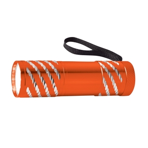 The Astro Flashlight has 9 white LED lights and a wrist strap. Simply push the button to turn the power on and off.