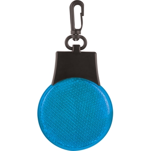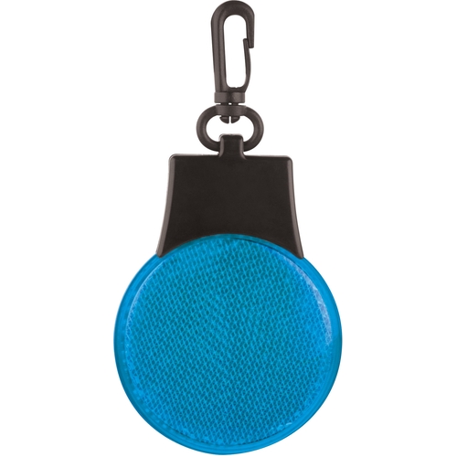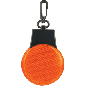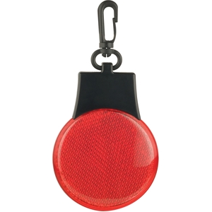 The Flashing Reflector Light features 3 LED light settings (solid blinking flashing left to right). Push the button on the back to power it on/off and to switch between settings. Includes a swivel plastic hanging clip.