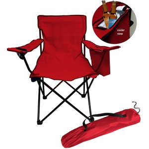 Portable camping/sport chair with a built in cooler in the arm rest. 600 denier nylon. Comes with carry case. Pop up design with sturdy aluminum frame. Comes with built in cup holder. Uses: Sporting Events,Beach,Camping,Outdoor,Sport,Tailgating.