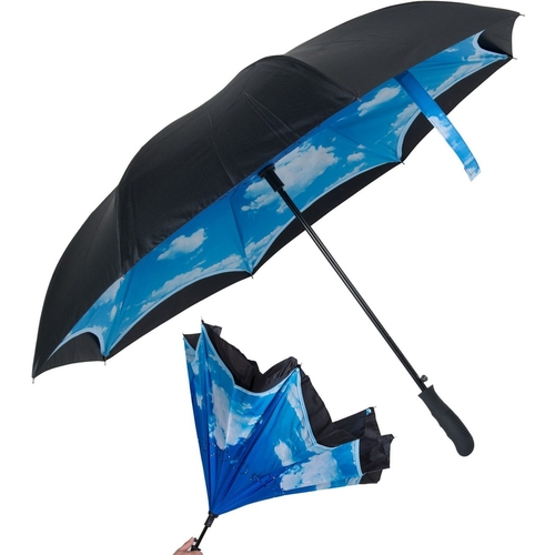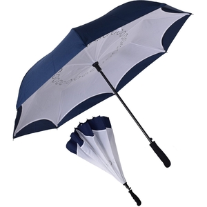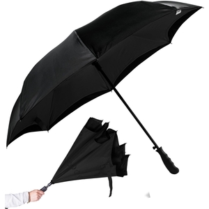 48" arc inverted fashion umbrella. AUTOMATIC CLOSE,pongee polyester cover,black rubber grip handle,flat ferrule. Rebel umbrella is an inverted umbrella,revolutionary designed to keep you dry when closing. The unique feature allows the water to push away when closing the umbrella making it easy when entering or leaving a car or through a door. ,Outdoor,Weather